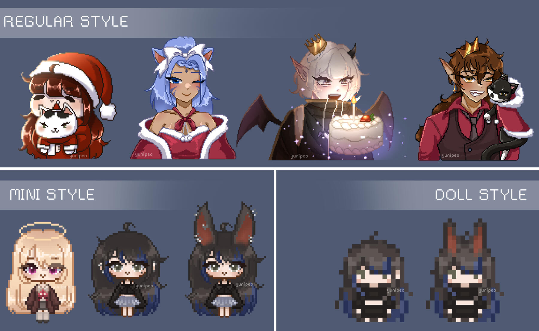 * EXTRA FEES APPLY FOR BACKGROUNDS (simple color/gradient/pattern BGs are free!)Extra Characters: 60% of original price.